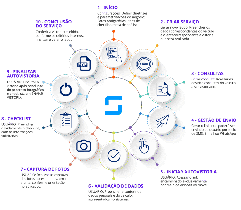 Plataforma completa que transforma o processo de AutoVistoria em uma experiência simples e eficiente. Ganhe agilidade na coleta e análise de dados em tempo real. Tudo isso com uma interface intuitiva, acessível via web link por e-mail, SMS ou WhatsApp.
