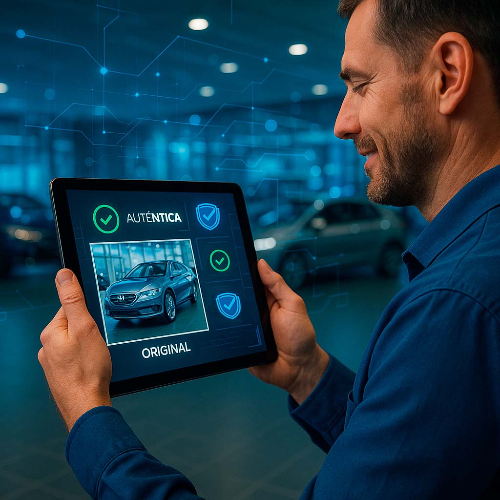 Este módulo realiza a validação da foto, identificando se a imagem foi obtida fisicamente ou se foi oriunda de outra fotografia preexistente. Esse serviço é essencial no processo de vistoria, pois certifica que todas as fotos do veículo, motor, chassi etc., sejam verdadeiras e tenham rastreabilidade.